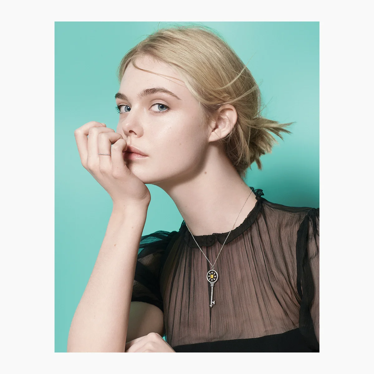 Some style is legendary. @ellefanning is a Hollywood star who dreams without limits. Elle is wearing our #TiffanyKeys kaleidoscope key pendant with diamonds.